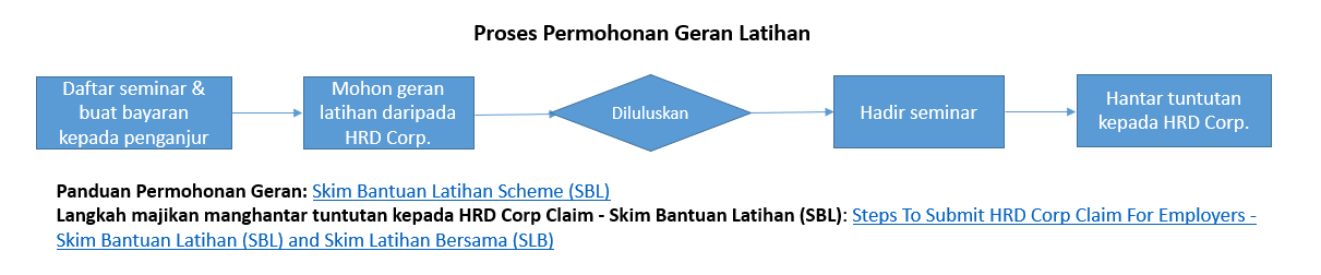 Majikan berdaftar di bawah Kumpulan Wang Pembangunan Sumber Manusia (KWPSM) boleh memohon geran latihan melalui sistem e-TRiS. Majikan berdaftar yang berminat perlu memilih ‘Non-Registered Training Provider Details – Government’ di bawah Skim Bantuan Latihan (SBL) semasa membuat permohonan geran latihan. Kelulusan geran latihan adalah tertakluk kepada terma dan syarat yang ditetapkan oleh HRD Corp.